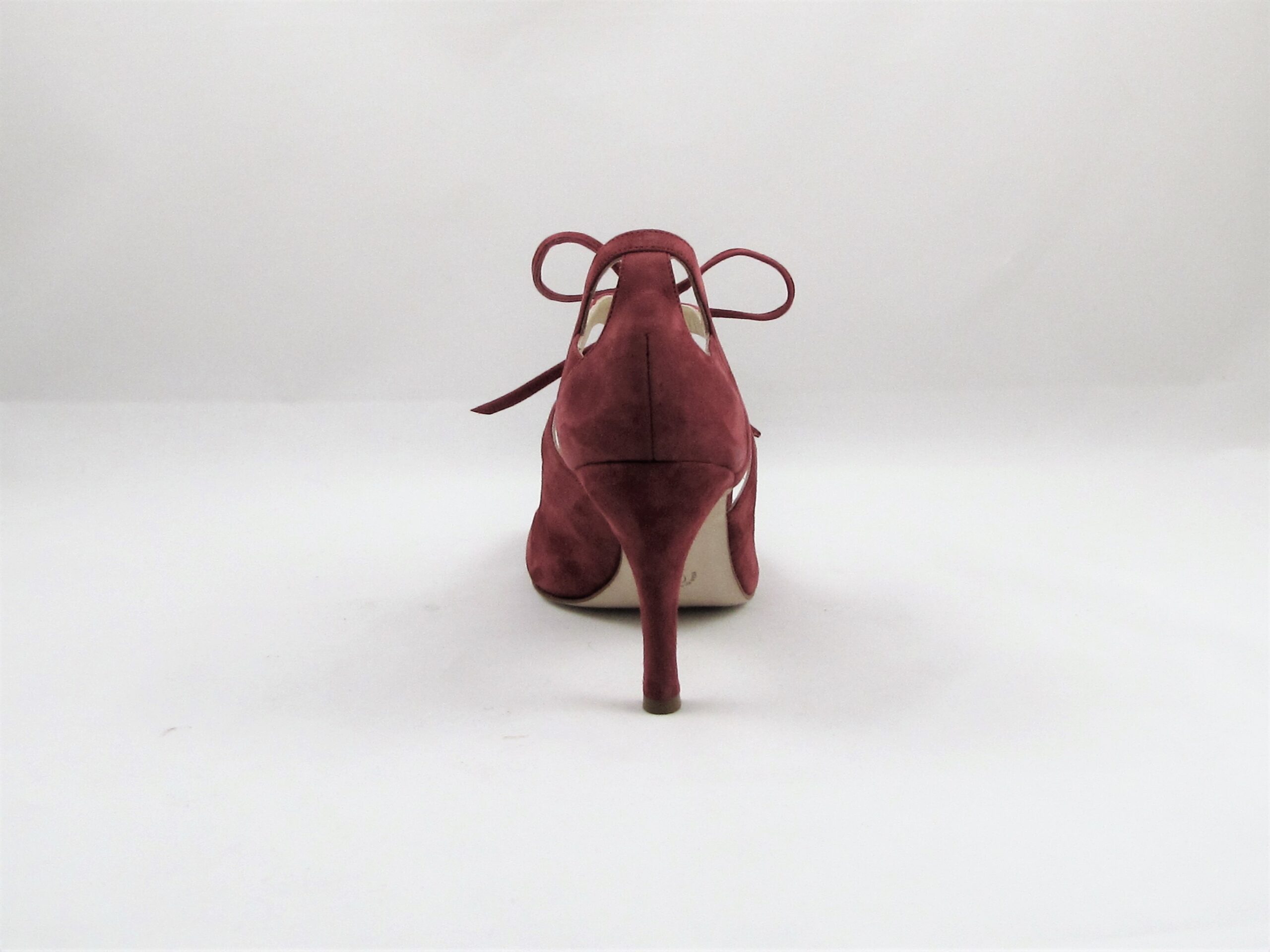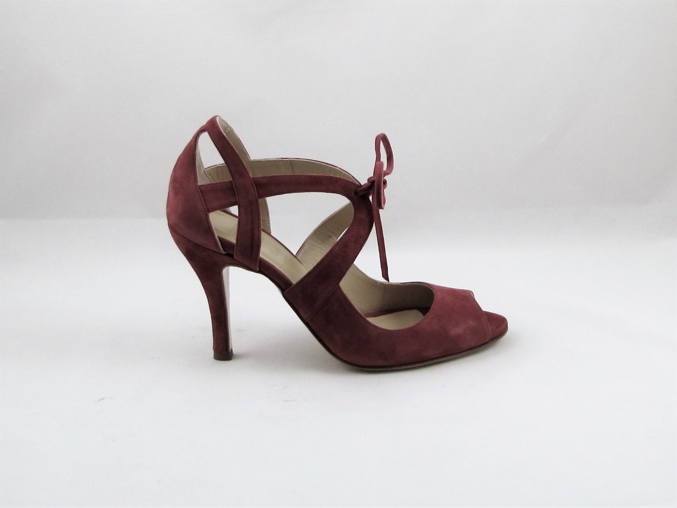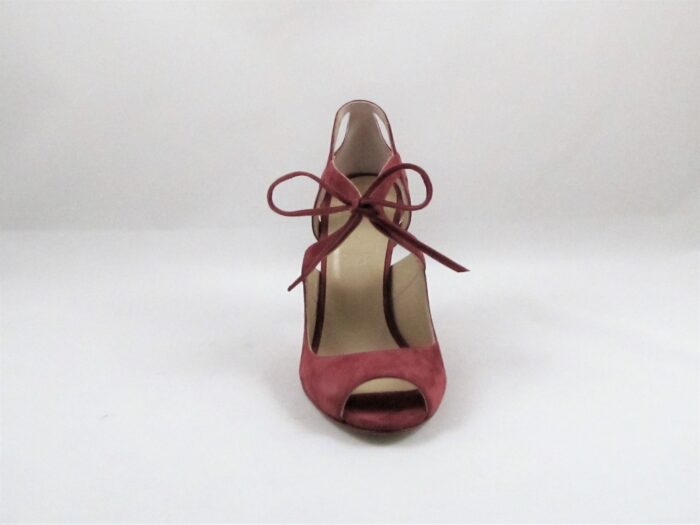 Γυναικείο παπούτσι:Εξώνυχο δετό,από μπορντώ σουέντ σε 9,5 εκ.ύψος.