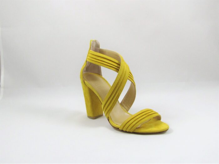 Γυναικείο παπούτσι:Πέδιλο,από κίτρινο σουέντ και φερμουάρ στην φτέρνα,σε 9 εκ.ύψος.