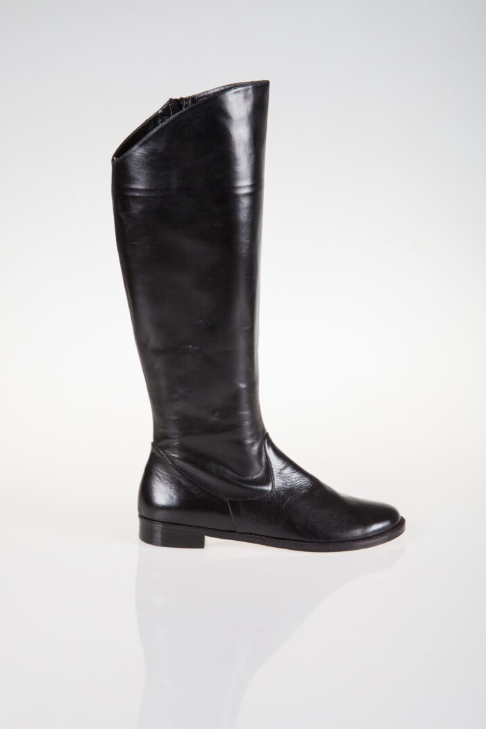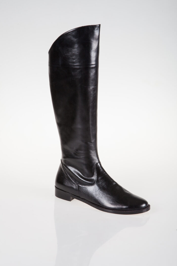Γυναικείο παπούτσι:Μπότα ,από μαύρο δέρμα (vitello),φόδρα από σεβρό ,γνήσιο σολόδερμα με βάρδουλο και πέτσινο τακούνι σε 2,5 εκ.ύψος.