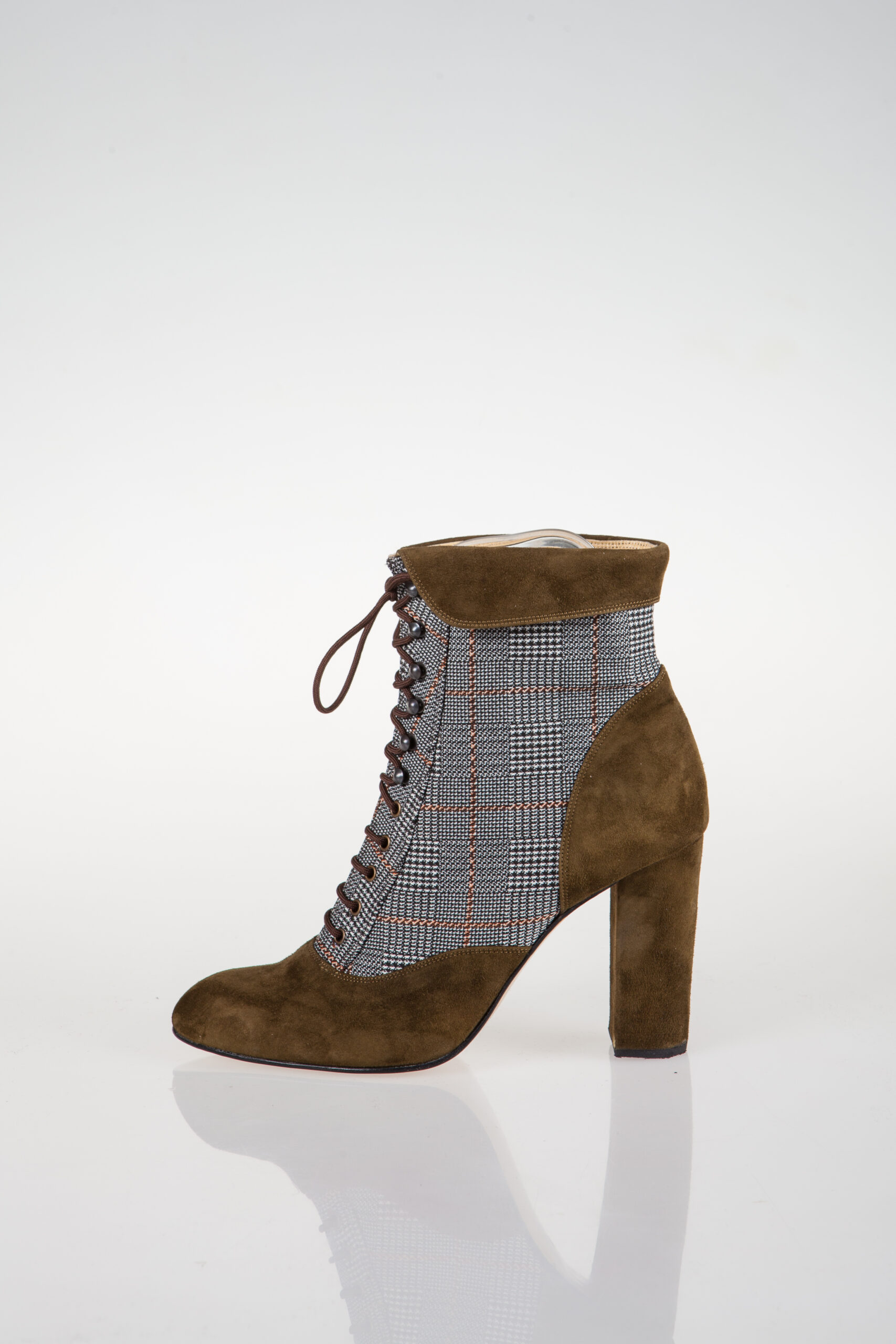 Γυναικείο παπούτσι:Μποτάκι,από σουέντ και ύφασμα,φόδρα από σεβρό,γνήσιο σολόδερμα. σε 9 εκ.ύψος.